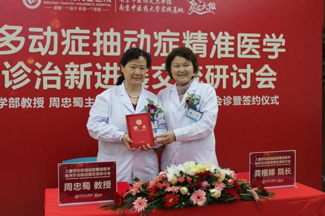 研讨会期间,南京天佑儿童医院院长龚根娣与周忠蜀教授共同签约,龚院长向周教授颁发南京天佑儿童医院儿科名医会诊中心专家聘书,正式聘请周教授为南京天佑儿童医院名医会诊中心专家组成员。