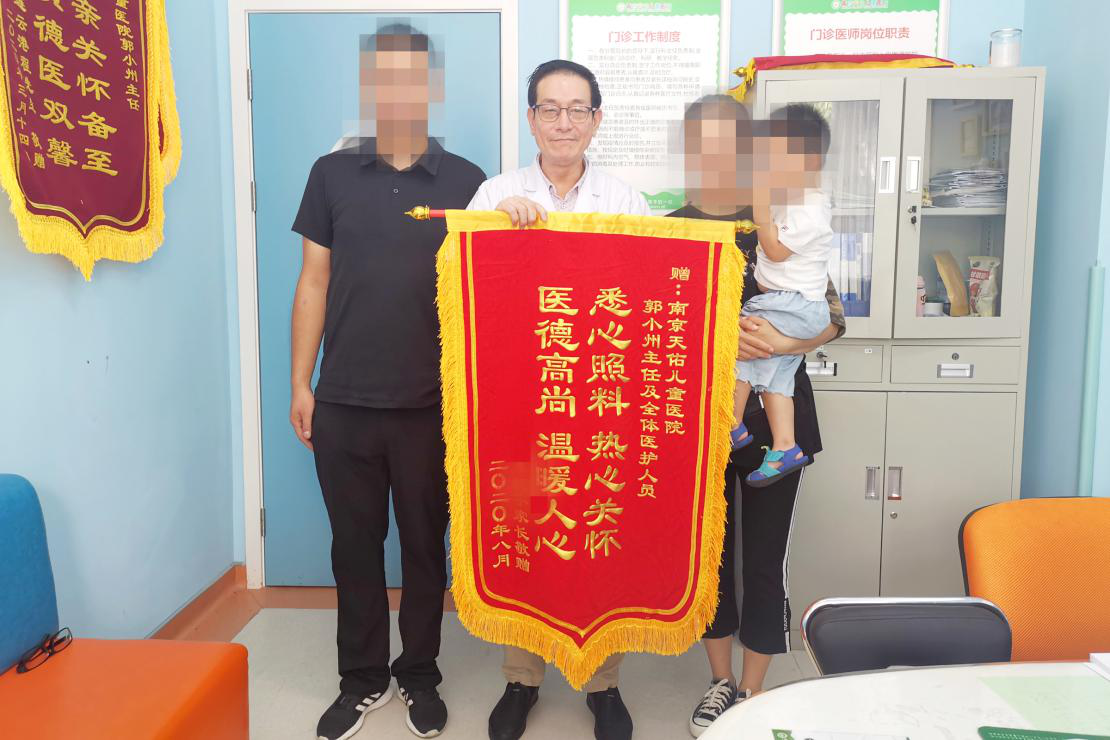 8月16日早上,南京天佑儿童医院的锦旗墙上又添了2面新锦旗。即将出院的航航(化名)父母向其主治医生郭小州、住院区护士及全体医护人员赠送了感谢锦旗。赠给郭主任的锦旗上写道:“悉心照料,热心关怀,医德高尚,温暖人心。”航航的妈妈说:“由衷地感谢您,这次孩子在天佑接受治疗,老公说我找对地方了!”航航爸爸也补充道:“郭主任,锦旗上这几个字是我特地自己花心思想的,我们能明显感受到孩子学习能力提高了,情绪也变好了,真的谢谢您。”